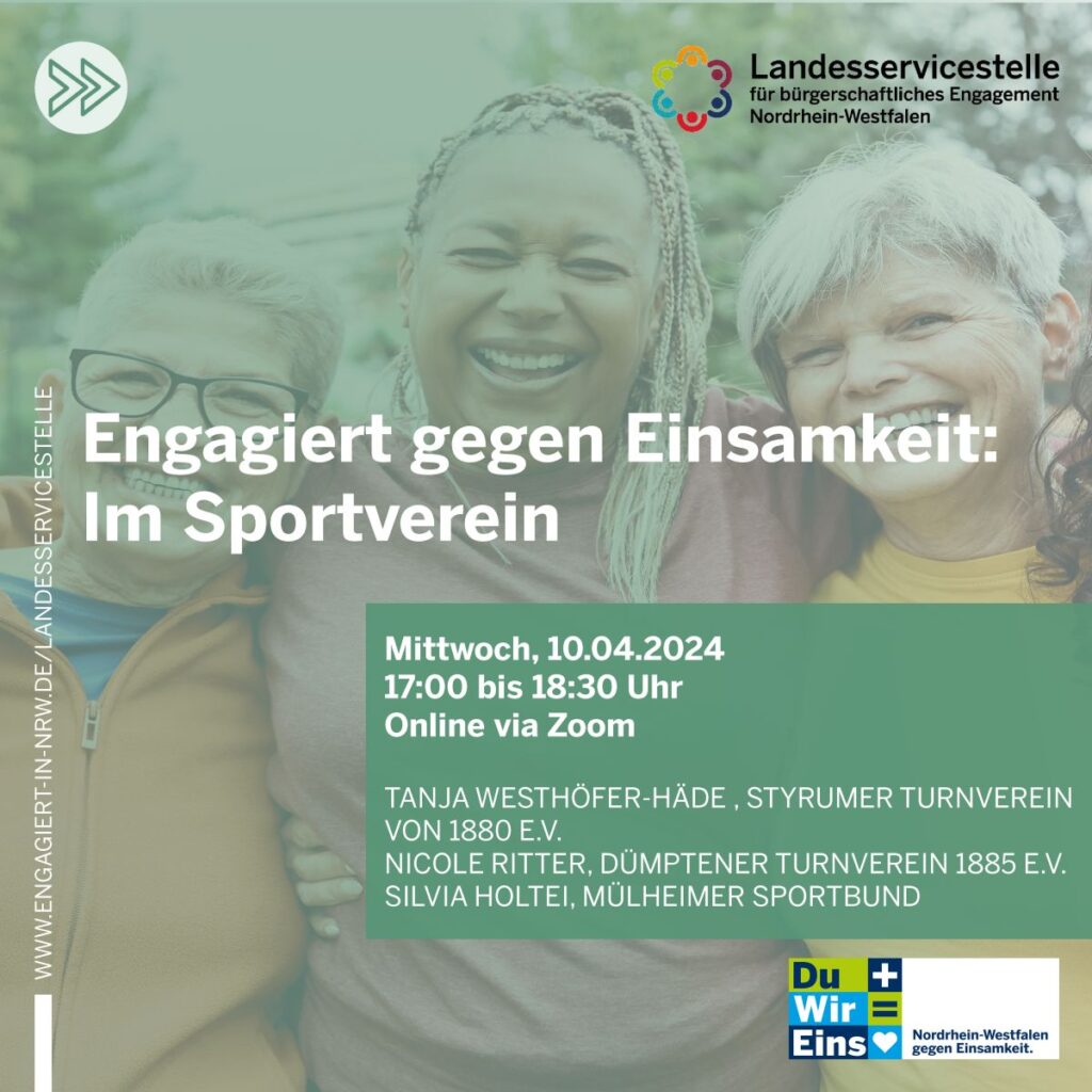 Sport ist ein sehr wirksamer Weg, um Einsamkeit zu bekämpfen – über alle Altersgruppen hinweg. In der Veranstaltung zeigen wir euch, wie ausgewählte Vereine mit beispielhaften Projekten gegen Einsamkeit vorgehen und es gibt wertvolle Hinweise, wie auch ihr euch gegen Einsamkeit einsetzen könnt. Diese Referentinnen werden uns ihre Projekte und Aktivitäten gegen Einsamkeit vorstellen: Tanja […]